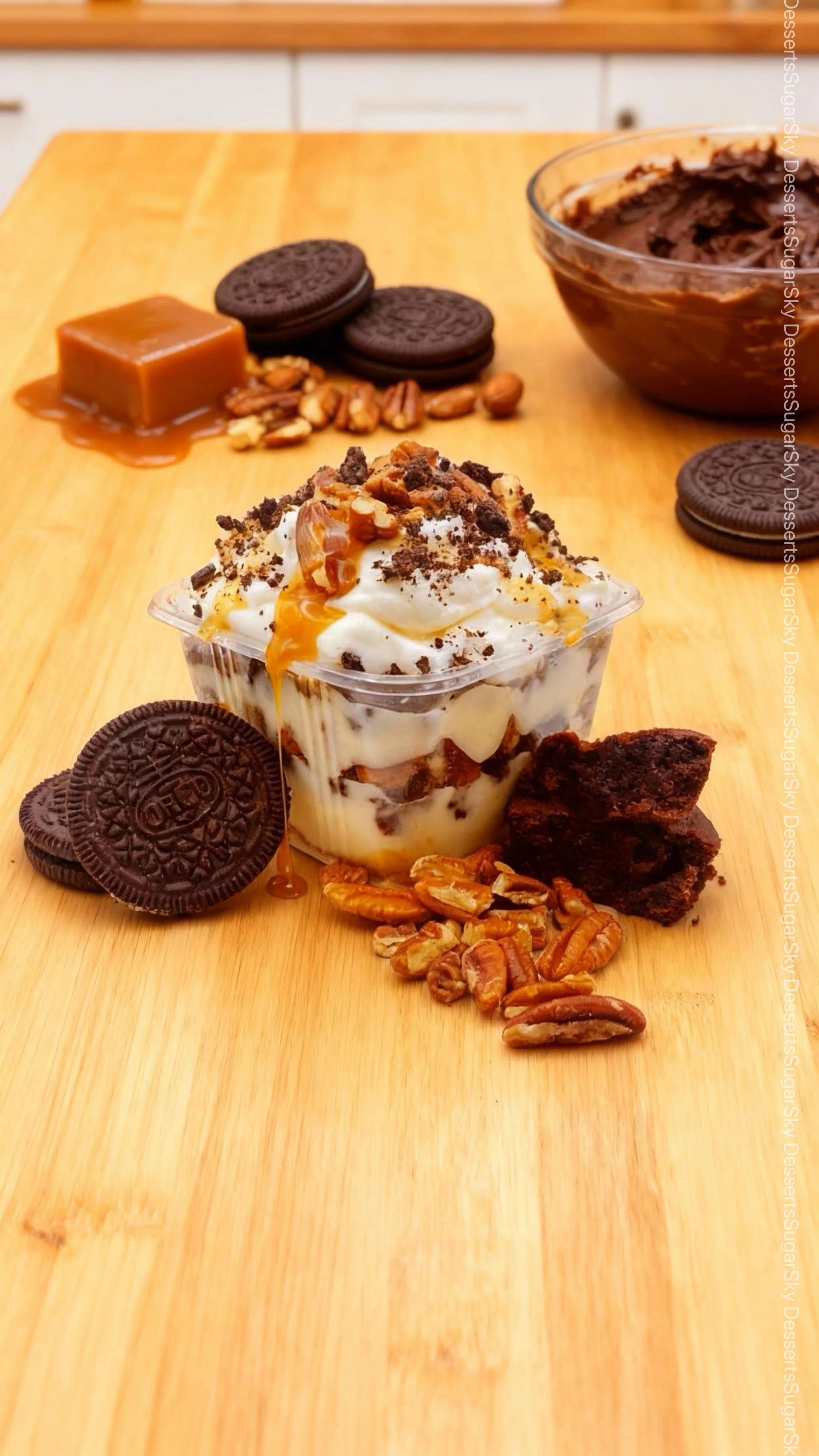 Layers of confetti cake, vanilla pudding, golden Oreos, and loads of sprinkles, homemade confetti frosting, topped with white chocolate chunks and homemade whipped cream. Each bite is a creamy, crunchy, and colorful celebration of flavor! 🧁🎂